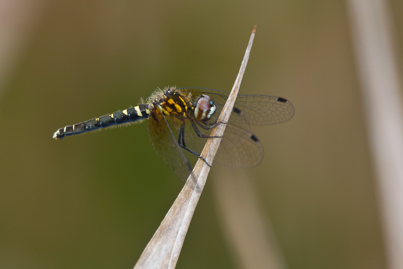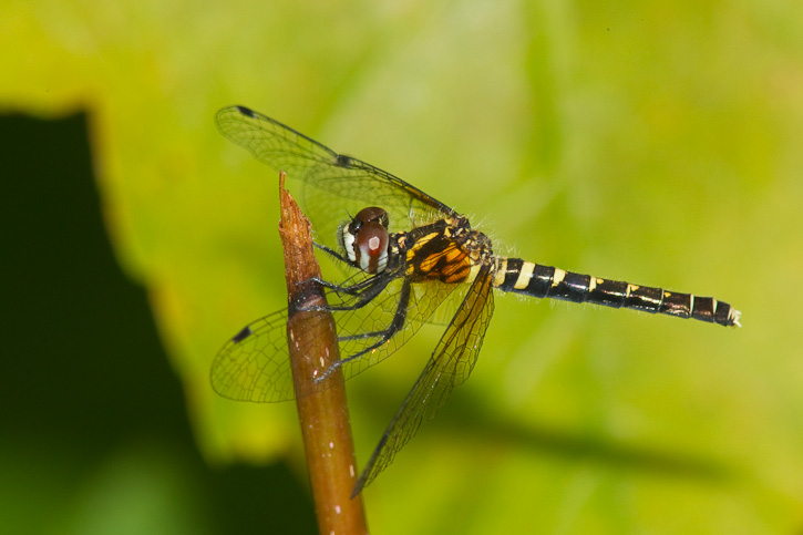 The Elfin Skimmer (Nannothemis bella) is a tiny dragonfly of much of the eastern United States. Although it may be fairly common in some areas, it is very small and inconspicuous. The first 11 shots on this page were taken with a Canon EOS 1D Mark IV and EF 300mm F/4 L IS lens and 2X extender and Canon 580 flash, in Washington Co., Maine, in June. 2010. The first 6 shots show females while the next 5 shots show males. | ![]() |