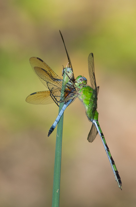 The male Great Pondhawk in the next 2 shots had captured a male Blue Dasher and was having lunch. These images were taken in San Antonio, Bexar Co., Texas, in August, 2009, with the same photo gear described previously. | ![]() |