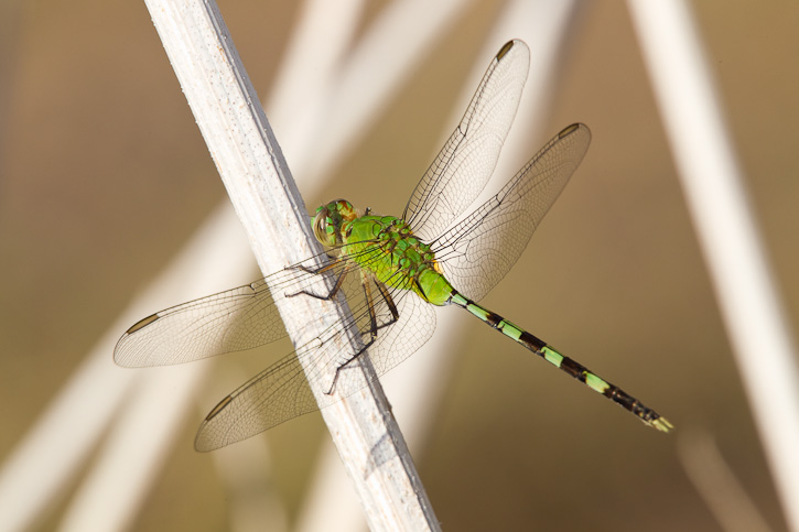 The female Great Pondhawk shown here was at Santa Ana N.W.R., Hidalgo Co., Texas, in October, 2009. This image was taken with a Canon EOS 1D Mark III and an EF 300mm F/4 L IS lens and 2X extender and 580 flash. | ![]() |