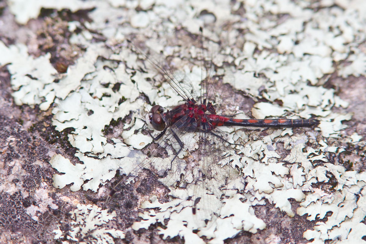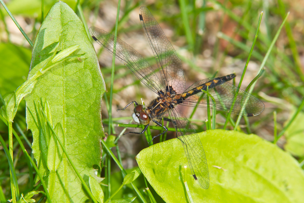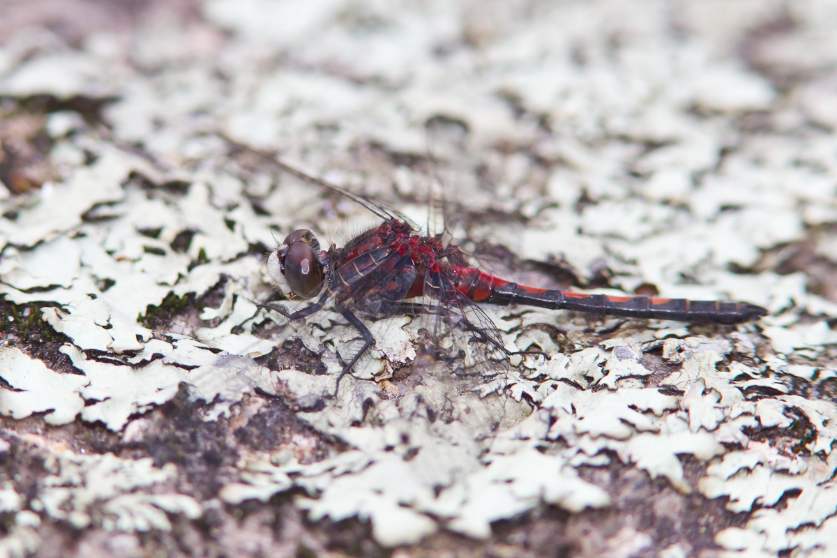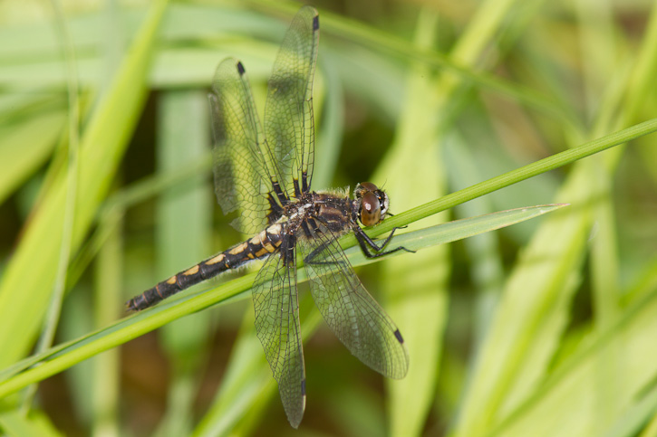 The Hudsonian Whiteface (Leucorrhinia hudsonica) occurs in the northern U.S. as well as most of Canada. The female shown here was in Penobscot Co., Maine, in June, 2010. This shot was taken with a Canon EOS 1D Mark IV and an EF 300mm F/4 L IS lens and 2X extender and 580 flash. | ![]() |
