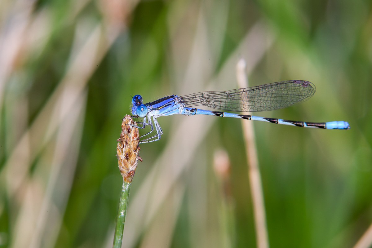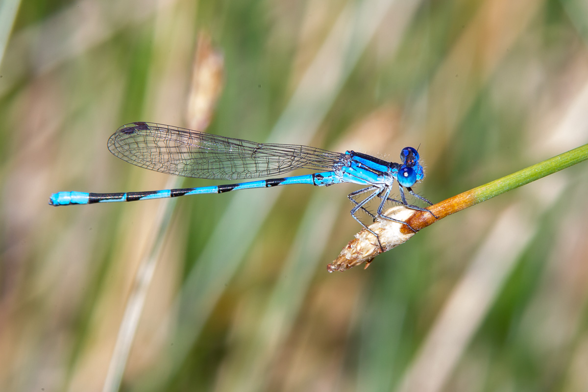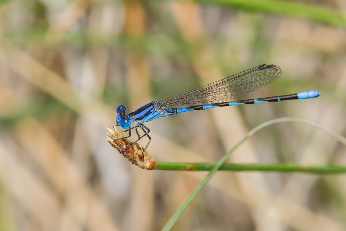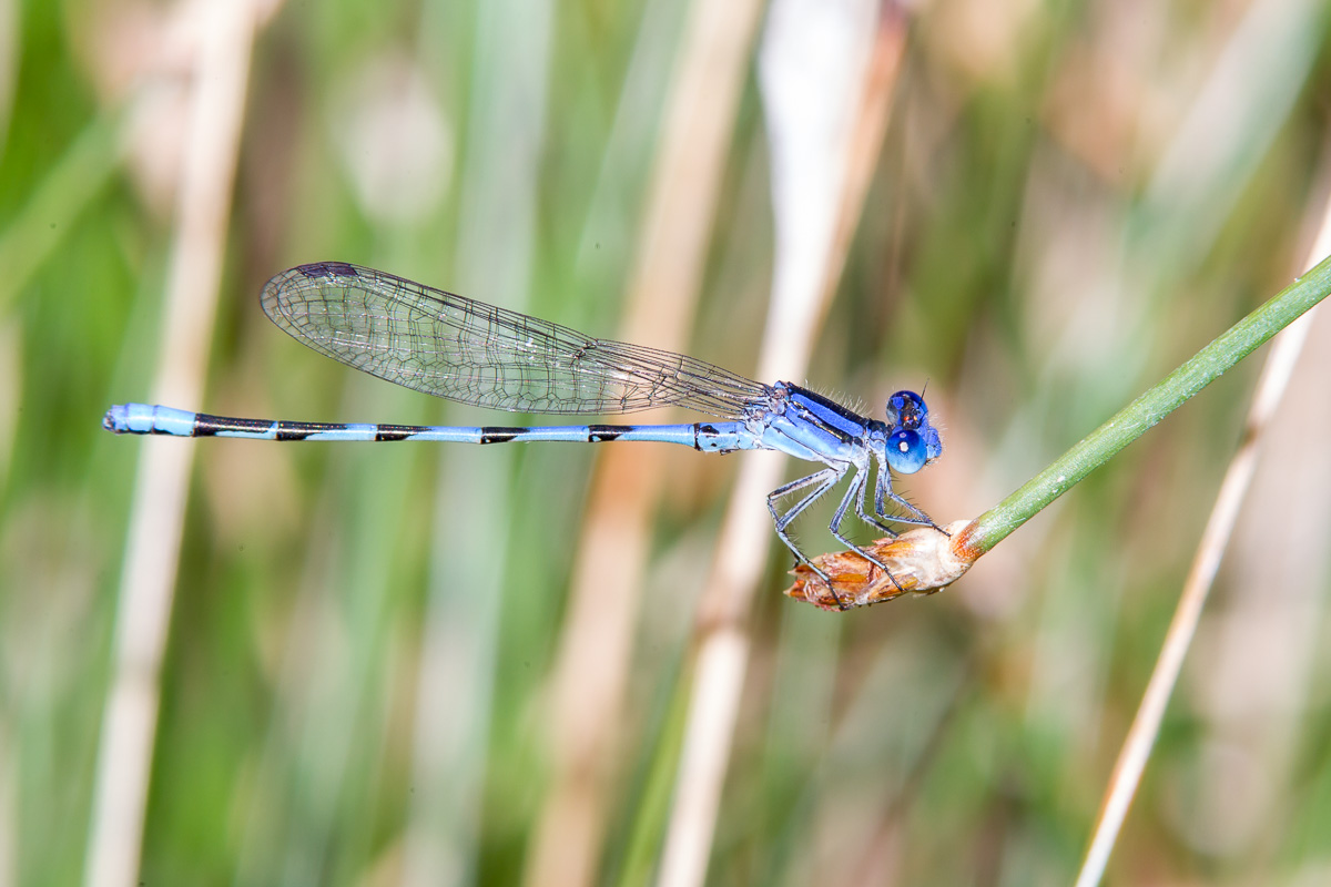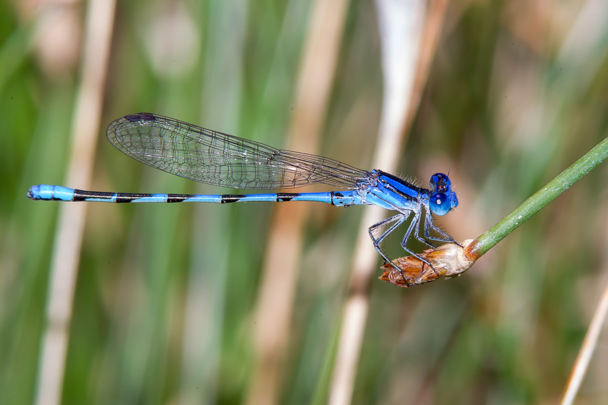 During field work in 2003 and 2004 it has been learned that this species is more widespread than previously thought. As of June, 2005, a number of new counties have been added to the known range of this species including Bandera, Jim Hogg, Kerr, Uvalde, Crockett, and others. Next are shots of males taken in some of these locations. Note the darker overall coloration of some of these individuals. The shot here was taken in Kerr Co., Texas, at a small marsh along the Guadalupe River in October, 2004, with a Canon EOS 1D Mark II and EF 180 mm F/3.5 Macro and 1.4X extender and 550 flash. | ![]() |