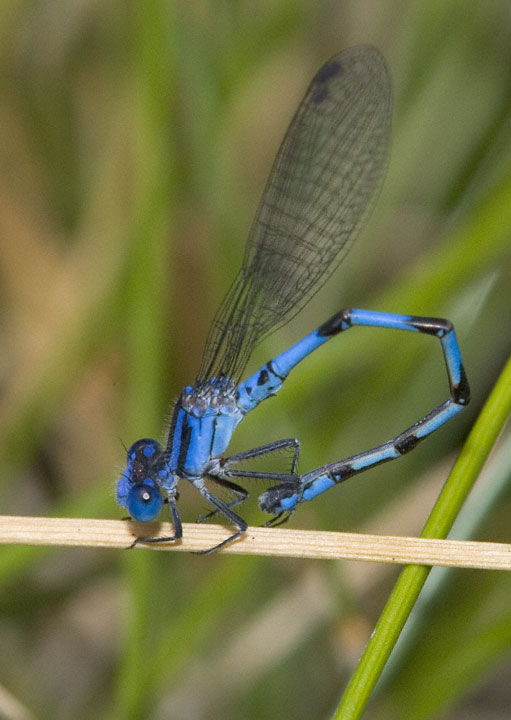 The Leonora's Dancer (Argia leonorae) is a little-known damselfly of Texas and northern Mexico. It has been found across a wide area of Texas but it is quite local and not found regularly. In June, 2003, Chuck Sexton (at that time the wildlife biologist at Balcones Canyonlands NWR north of Austin) and I were making a survey of Odonates on different tracts of the refuge in parts of three counties, Travis, Burnet and Williamson. At one of the Burnet County sites we were investigating a seepage area where overflow from a small spring-fed pond created a wet meadow. While examining various dragonflies and damselflies here we found an unfamiliar damselfly that later proved to be Leonora's Dancer. These damsels were examined in detail and photographed extensively. This location added Burnet County to the known range of this species and adds Balcones Canyonlands as the only national wildlife refuge to host this species of special concern. The photo here was a digital capture with a Canon EOS 10D and EF 180 mm Macro lens with a 1.4X extender and a ring flash. The next photo shows a female taken at the same time and location. |