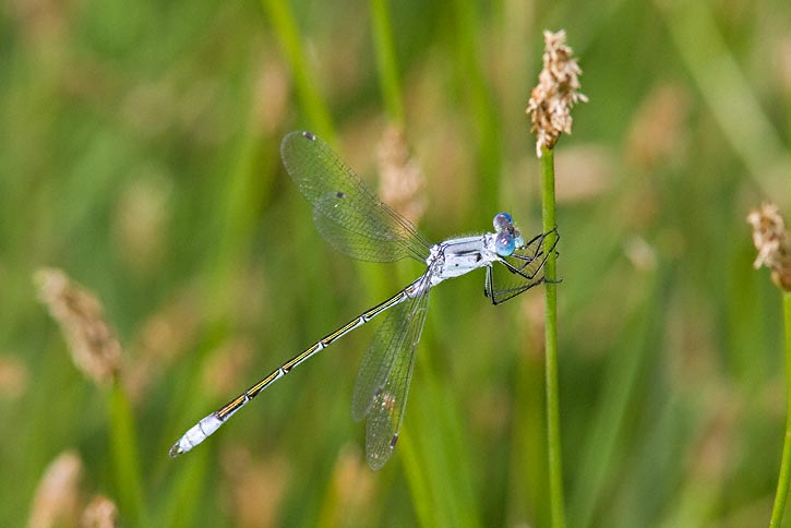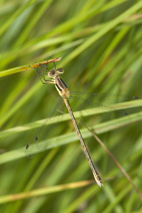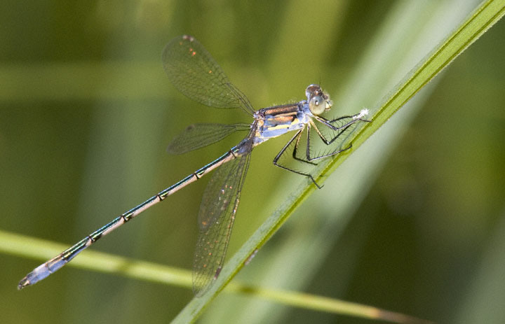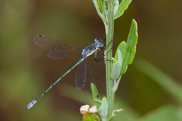 The male Lyre-tipped Spreadwings in the next two shots were in the McKelvie National Forest, Cherry Co., Nebraska, in July, 2011. These shots were taken with a Canon EOS 1D Mark IV and a Sigma 50-500mm lens and Canon 580 flash. |