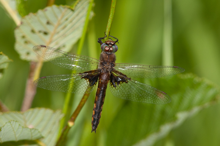 The Mantled Baskettail (Epitheca [Tetragoneuria] semiaquea) is a small, thick-bodied dragonfly which primarily occurs if the far eastern areas of the United States. There are many records, however, scattered in parts of the mid west and south-central United States as well. The individual in the first 3 shots was in Austin, Travis Co., Texas, in April, 2007. These shots were taken with a Canon EOS 1D Mark II and EF 300mm F/4 L IS lens and 2X extender and 580 flash. These shots as well as a specimen collected at the same location, provided a 1st Travis Co. record. | ![]() |