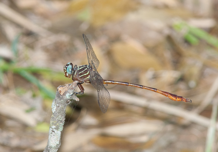 The young male Narrow-striped Forceptail in the next 2 shots shown here was also the Rio Grande in Hidalgo Co., Texas, in September, 2008. These shots were taken with a Canon EOS 1D Mark III and EF 300mm F/4 L IS lens and 2X extender and Canon 580 flash. |