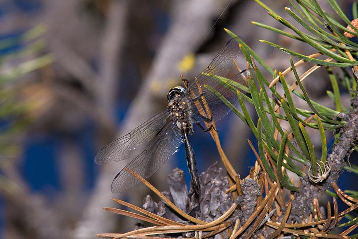 The Occulted Emerald (Somatochlora minor) occurs across much of Canada as well as the northwestern and northeastern United States. It is often seen foraging along shady conifer forest edges, or along quiet roadways. The 2 shots here were taken in Klamath Co., Oregon, in August, 2008, with a canon EOS 1D Mark III and EF 300mm F/4 l IS lens and 2X extender. These were the only images I was able to get on this occasion, but perhaps I will get more on another occasion. | ![]() |