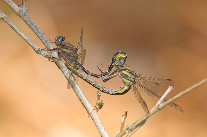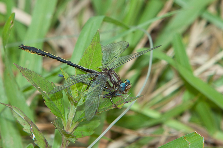 The pair of Oklahoma Clubtails in copula on the right was along Alum Creek, Bastrop Co., Texas, in April, 2011. This shot was taken with a Canon EOS 1D Mark IV and a Sigma 50-500mm lens and Canon 580 flash. | ![]() |