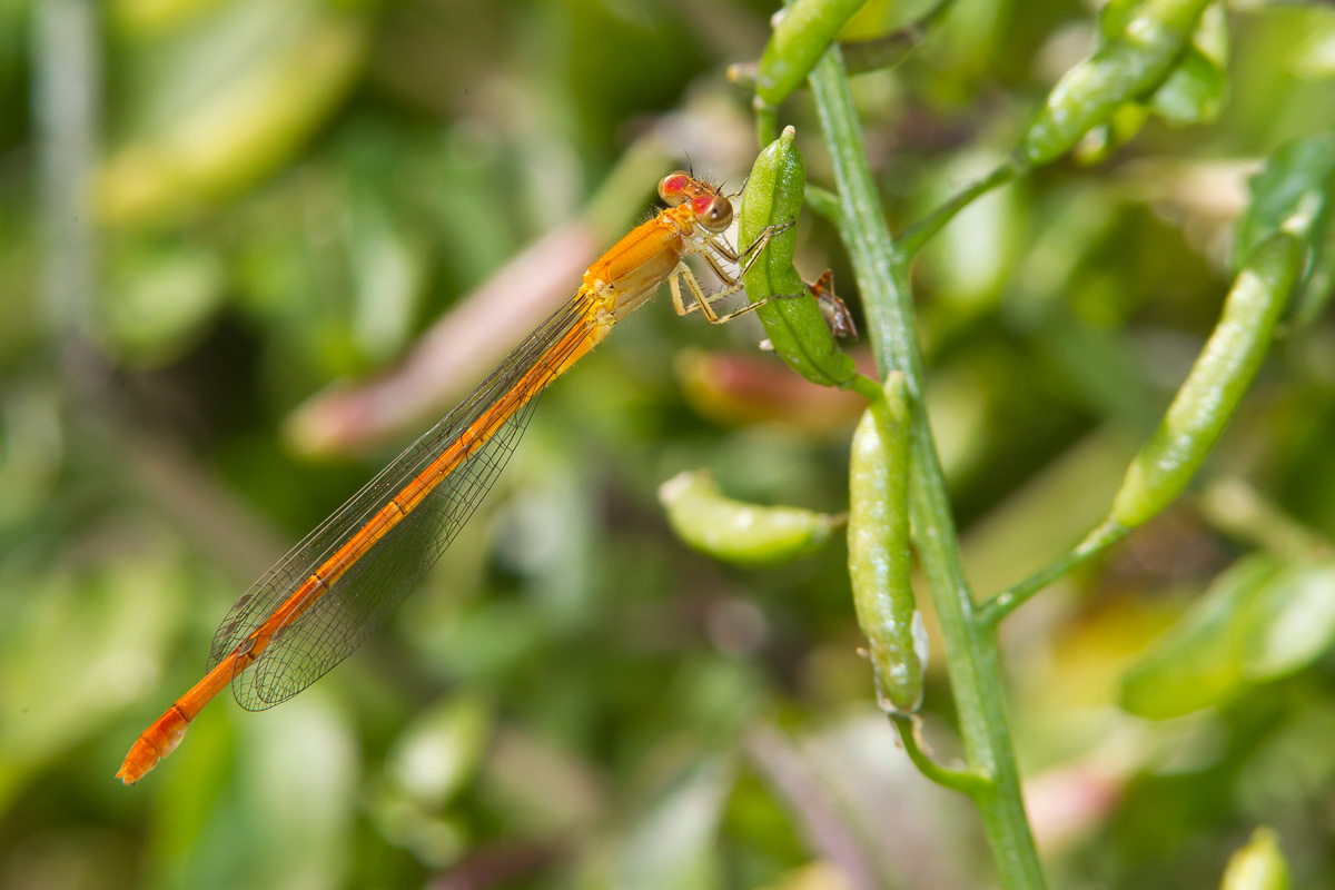 Painted Damsel Hesperagrion heterodoxum young male with prey item Big Bend Ranch State Park, Presidio Co., Texas 29 September 2017 |