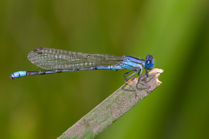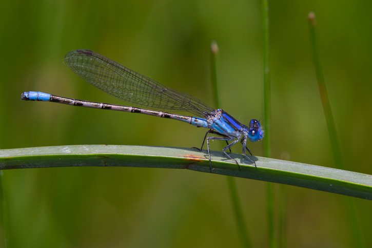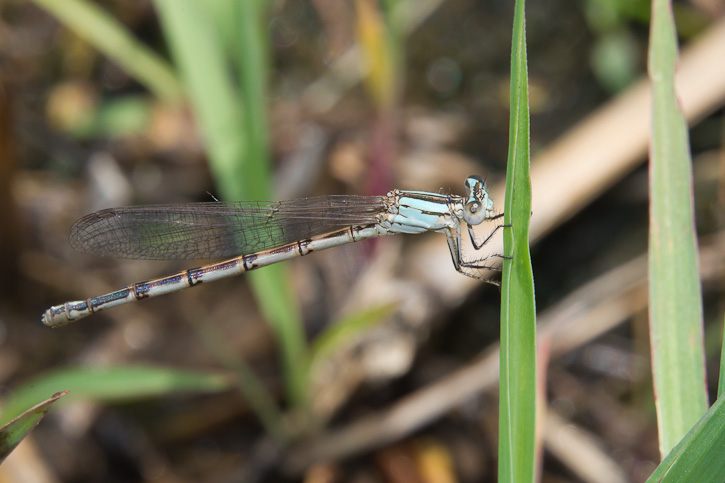 The Paiute Dancer (Argia alberta) is a damselfly of parts of the central and western United States, occurring from western Iowa to Oregon and south to parts of Arizona, New Mexico and Texas. It occupies areas of sedges and other marshy habitats along slow moving streams, as well as lakes and ponds. The first eleven images on this page show Paiute Dancers in Cottonwood Canyon, Comanche National Grasslands, Baca Co., Colorado, in July, 2011. These shots were taken with a Canon EOS 1D Mark IV and a Sigma 50-500mm lens and Canon 580 flash. The first two shots show males. | ![]() |
