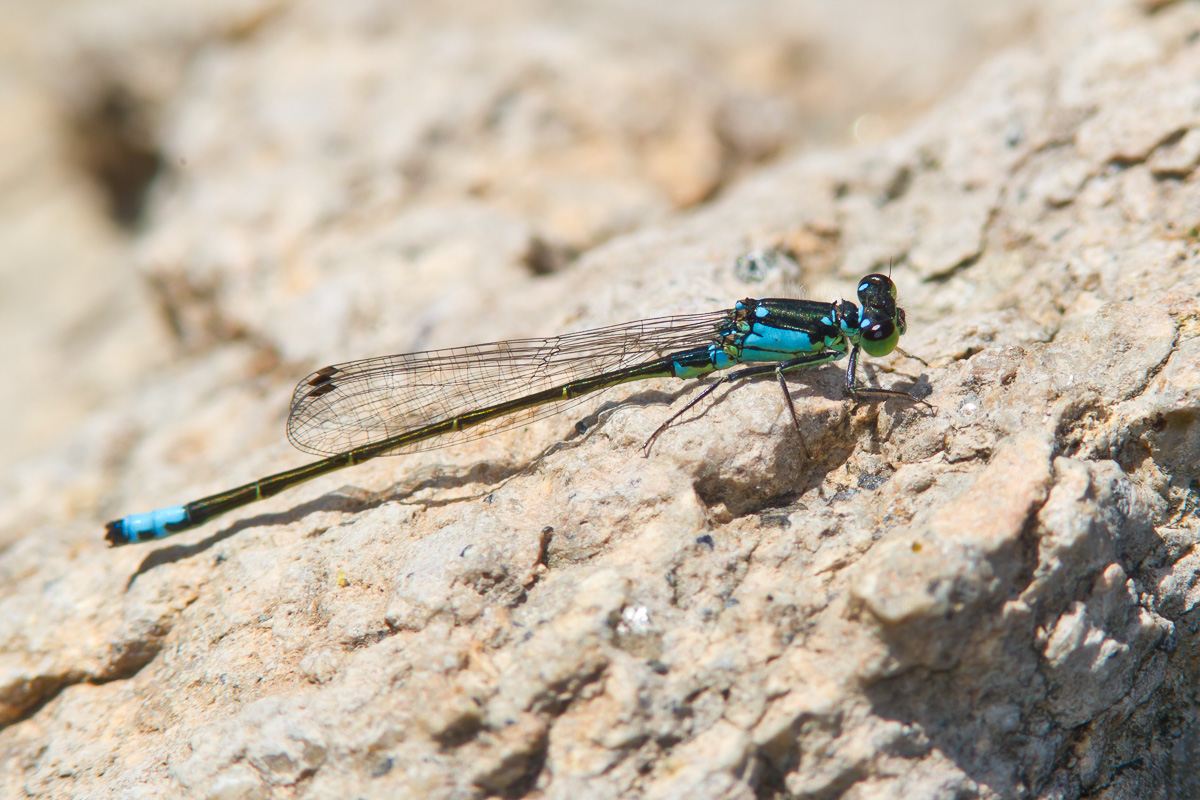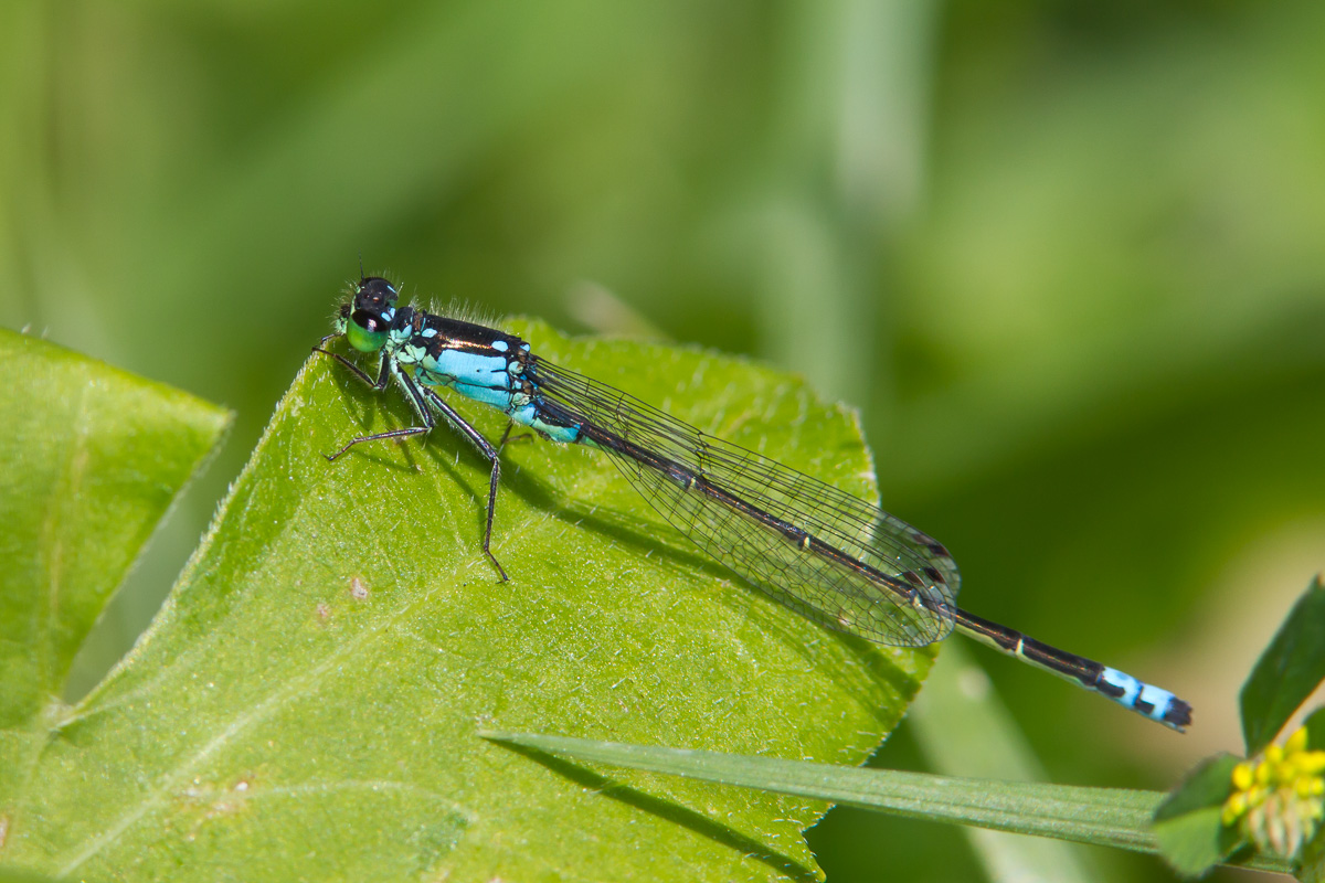 The Plains Forktail (Ischnura damula) occurs across much of the American mid west from parts of northern Canada southward to the Mexico border in Arizona, New Mexico and west Texas. In Texas this species occurs in the Trans-Pecos area and in parts of the Panhandle. The digital shots shown on this page were taken at Buffalo Springs in the Rita Blanca National Grasslands in Dallam Co., Texas in the extreme northwest part of the Panhandle in August 2004 with a Canon EOS 1D Mark II and an EF 180 Macro F/3.5 lens and 1.4X extender. | ![]() |