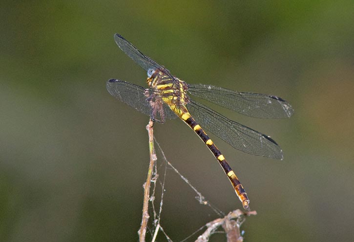 The Ringed Forceptail (Phyllocycla breviphylla) is a little known tropical dragonfly which was first discovered in the United States in 2004. Since that time, it has proven to be locally common in some locations in deep south Texas, usually along the Rio Grande. It is similar in general appearance to several other Texas species such as Broad-striped Forceptail, Narrow-striped Forceptail, as well as Five-striped Leaftail, but with a little practice the field identification of the species is not difficult. The first 7 images on this page (5 shots of males, 2 of females) were all taken along the banks of the Rio Grande in Hidalgo Co., Texas, in June, 2008, with a Canon EOS 1D Mark III and EF 300mm F/4 L IS lens and 2X extender and flash. | ![]() |