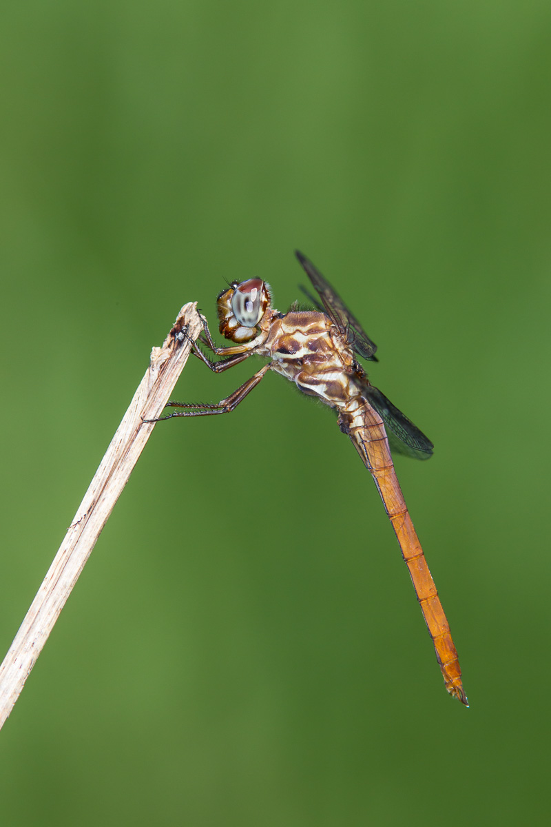 The young male Roseate Skimmer shown here was in Austin, Travis Co., Texas, in May, 2009. This shot was taken with a Canon EOS 50D and an EF 70-200mm F/2.8 L IS lens and 2X extender and 580 flash. | ![]() |