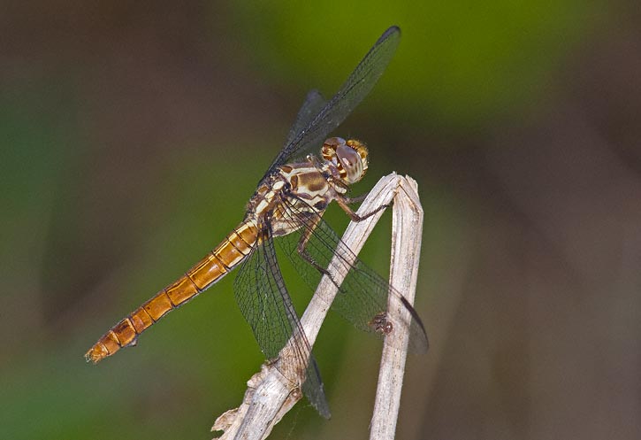 The female Roseate Skimmer shown here was near Mission, Hidalgo Co., Texas, in May, 2008. This image was taken with a Canon EOS 1D Mark III and EF 300mm F/4 L IS lens and 2X extender and 580 flash. | ![]() |