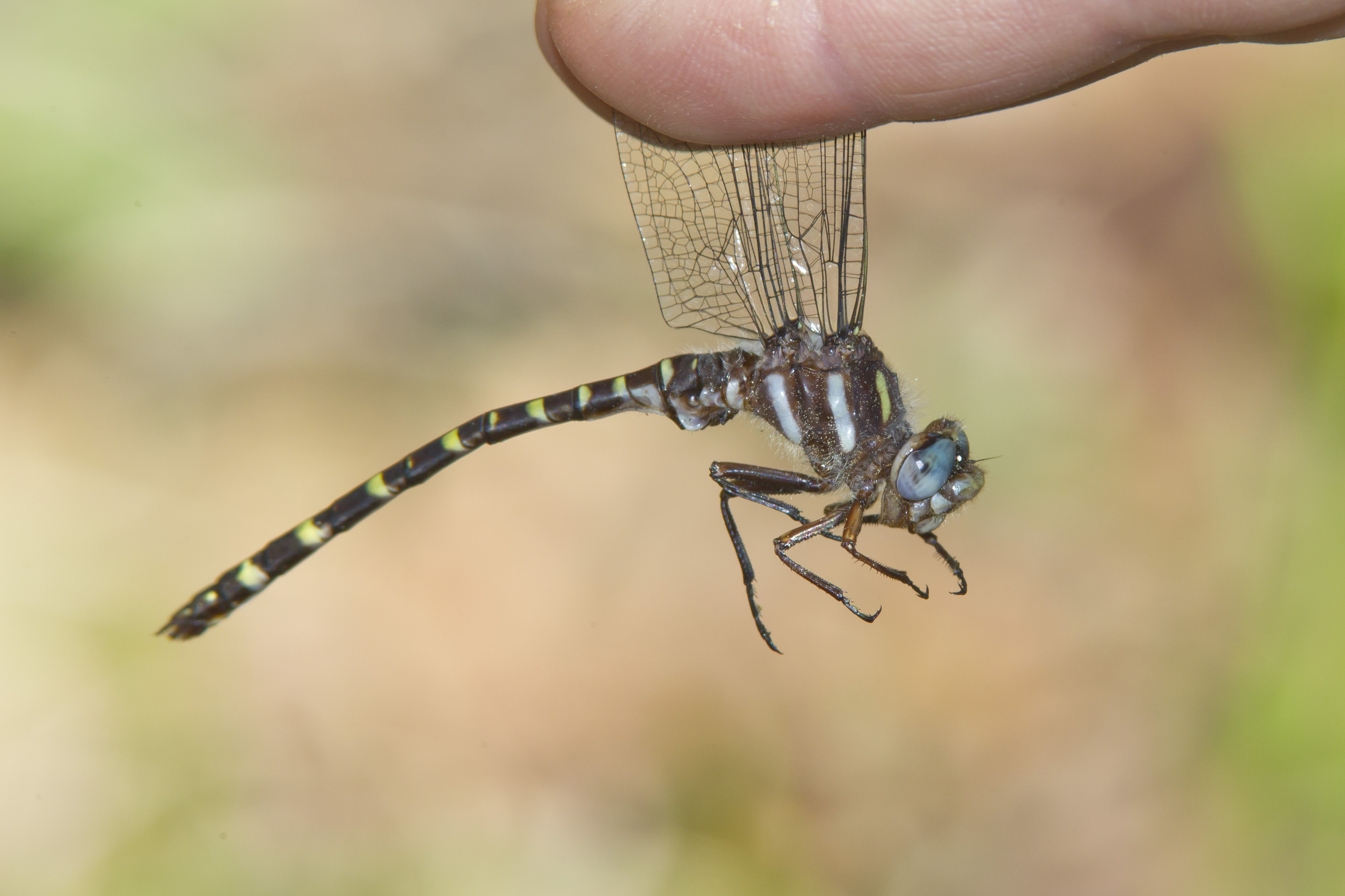 On the right is the first specimen ever collected of Sarracenia Spiketail (right) held next to a Twin-spotted Spiketail (Cordulegaster maculata) illustrating some of the visual differences. This image was taken in April, 2010 in the Angelina National Forest, Jasper Co., Texas. | ![]() |