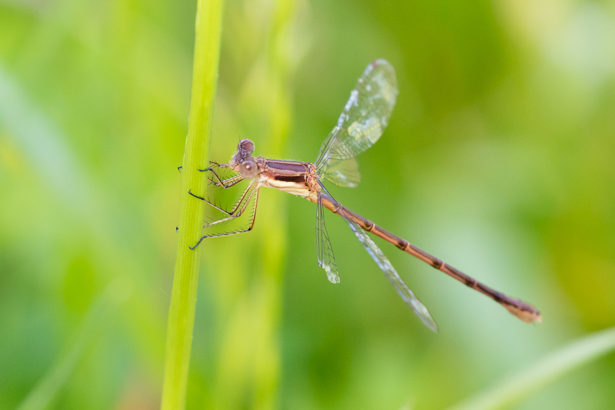The female Southern Spreadwing shown here was near Waelder, Gonzales Co., Texas, in April, 2010. This shot was taken with a Canon EOS 1D Mark IV and an EF 300mm F/4 L IS lens and 2X extender and 580 flash. | ![]() |