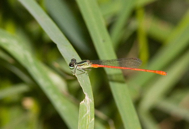 The Striped Firetail (Telebasis filiola) is a tropical damselfly of Mexico. I am not certain of its full geographic range at this time. The first 6 shots shown on this page (4 males and 2 females) were taken in southern Tamaulipas, Mexico, in May, 2007, with a Canon EOS 1D Mark II and EF 300mm F/4 L IS lens and 2X extender. My thanks to Dennis Paulson for making an identification of this species from my images. Dennis speculates that this species may show up in south Texas at some time. | ![]() |