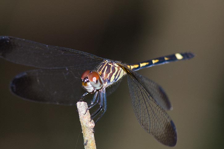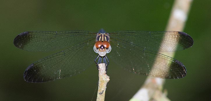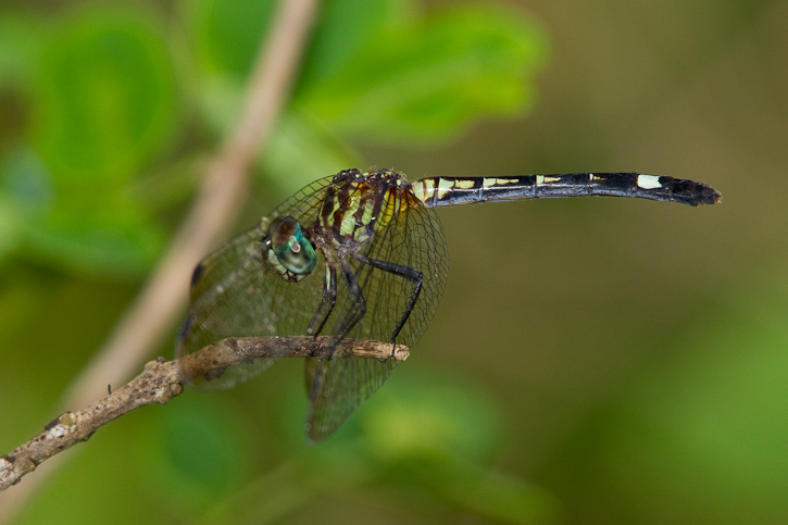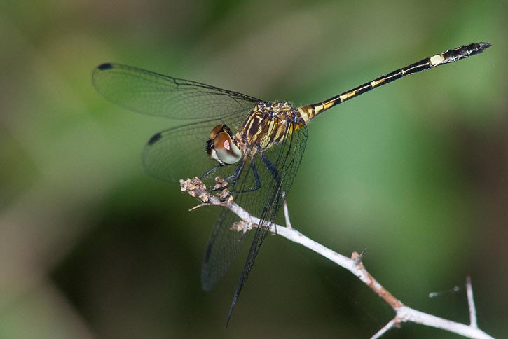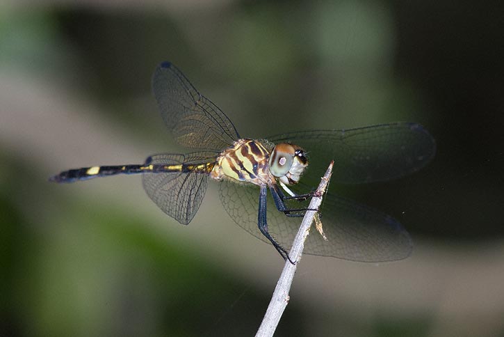 The Three-striped Dasher (Micrathyria didyma) is a tropical dragonfly which is only found in south Florida and south Texas within the U.S. It usually prefers shady habitats and can be quite hard to spot on occasion. The male and female shown in the top 2 images here were at Bentsen S.P., Hidalgo Co., Texas, in June, 2008. These shots were taken with a Canon EOS 1D Mark III and EF 300mm F/4 L IS lens and 2X extender and flash. |