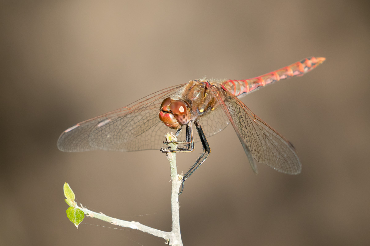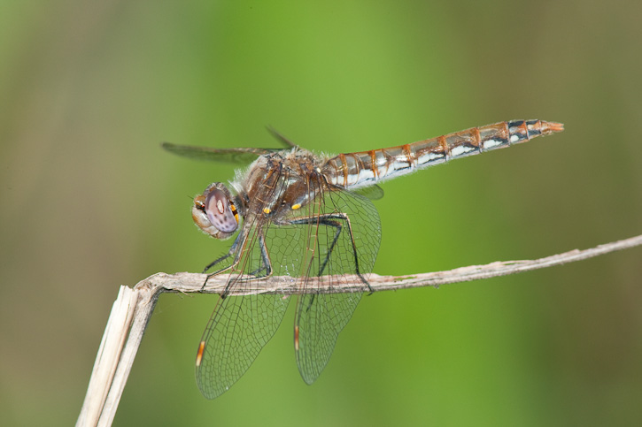 The young male Variegated Meadowhawk shown here, and the mature male in the next shot were both in Austin, Travis Co., Texas, in March 2010. These 2 shots were taken with a Canon EOS 1D Mark IV and an EF 300mm F/4 L IS lens and 2X extender and 580 flash. | ![]() |