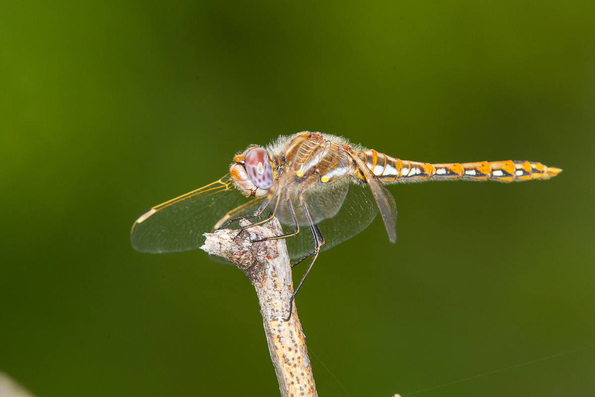 The female Variegated Meadowhawk on the right was in Austin, Travis Co., Texas, in September, 2011. This shot was taken with a Canon EOS 1D Mark IV and a Sigma 50-500mm lens and Canon 580 flash. | ![]() |