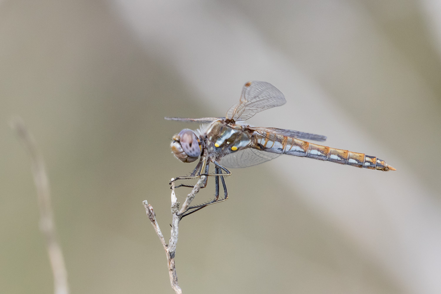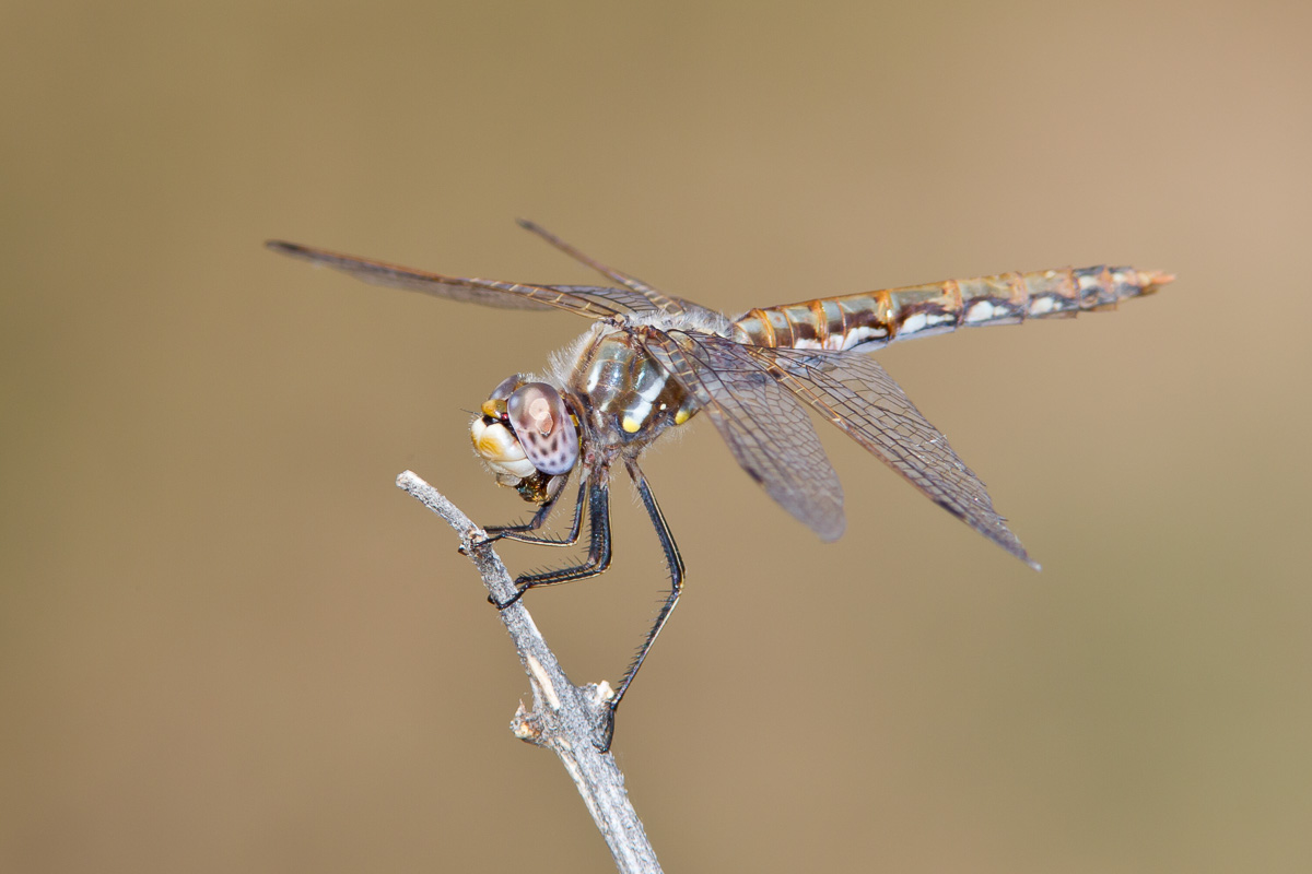 The female Variegated Meadowhawk in the next two images was in the Kisatchie National Forest, Vernon Parish, Louisiana, in March, 2012. These shots were taken with a Canon EOS 1D Mark IV and a Sigma 50-500mm lens and Canon 580 flash. | ![]() |