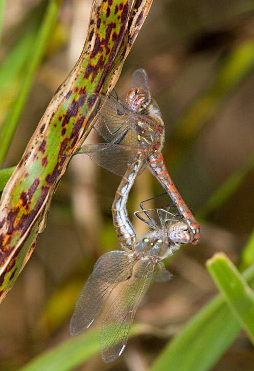 The female Variegated Meadowhawk on the right was at the BLM overflow wetlands, Chavez Co., New Mexico, in August, 2011. This shot was taken with a Canon EOS 1D Mark IV and a Sigma 50-500mm lens and Canon 580 flash. | ![]() |