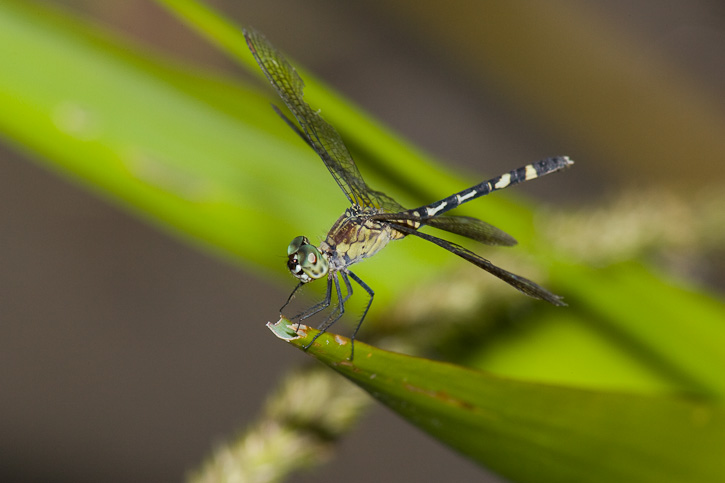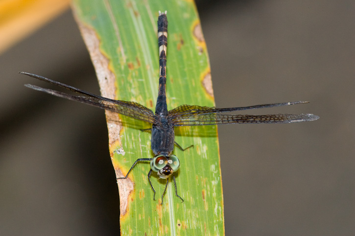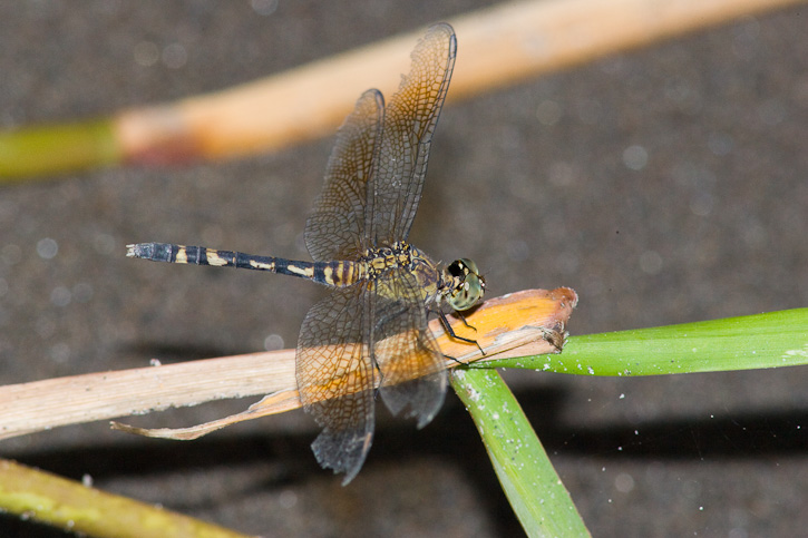 | The dragonfly known as Erythrodiplax attenuata is apparently a common and widespread species along large rivers in Peru. We found the species in abundance along virtually any riverbank we visited. The males and females on this page were photographed in July, 2006, along the Rio Sucusari, Departmento de Loreto, Peru, with a Canon EOS 1D Mark II and EF 300mm F/4 L IS lens and 2X extender and 580 flash. | ![]() |