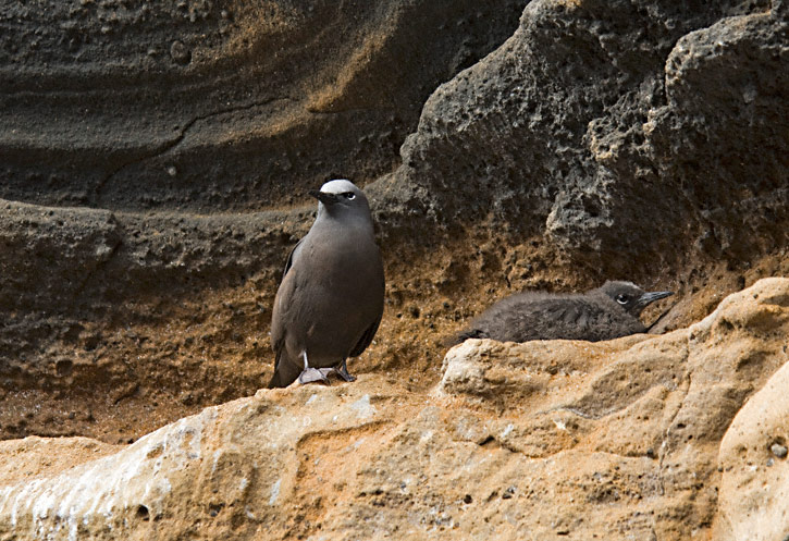 | The Brown Noddy (Anous stolidus) is a seabird in the tern family. It is wide ranging in tropical seas and is found across much of the world. The shots on this page show several views of Brown Noddies at Punta Vicente Roca, Isabela Island, in the Galapagos Islands in July, 2007. These shots were taken with a Canon EOS 1D Mark III and EF 100-400mm F/4.5-5.6 L IS lens. | ![]() |