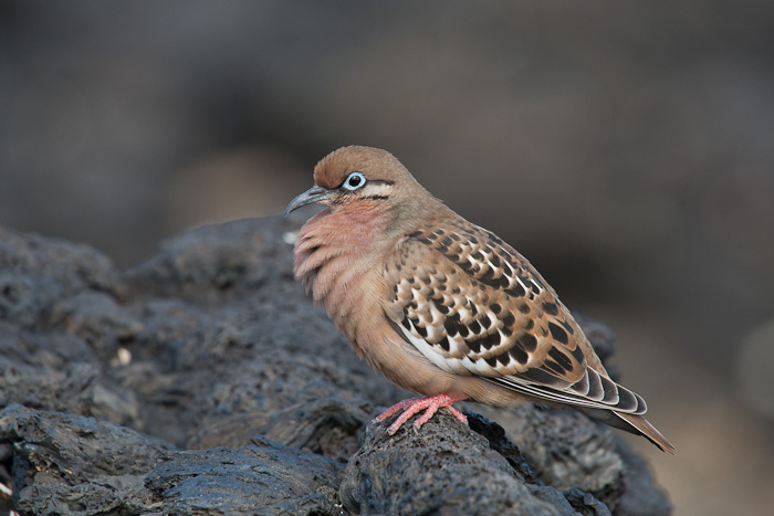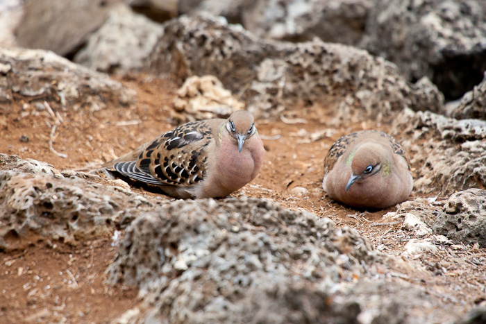 | The Galapagos Dove (Zenaida galapagoensis) only occurs on the Galapagos Islands of Ecuador. The first seven shots on this page were taken in the Galapagos Islands in August, 2010, with a Canon EOS 1D Mark IV and a Sigma 50-500mm lens. The dove on the right was on Hood Island. |