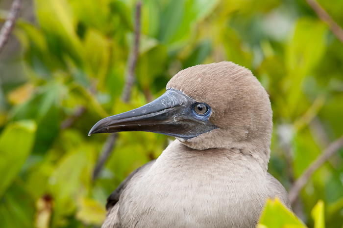 | The next 11 images of Red-footed Boobies were all taken on Tower Island in the Galapagos Islands of Ecuador in August, 2010, with a Canon EOS 1D Mark IV and a Sigma 50-500mm lens. The shot at the right shows a nestling waiting for its parents to return with a meal. |
