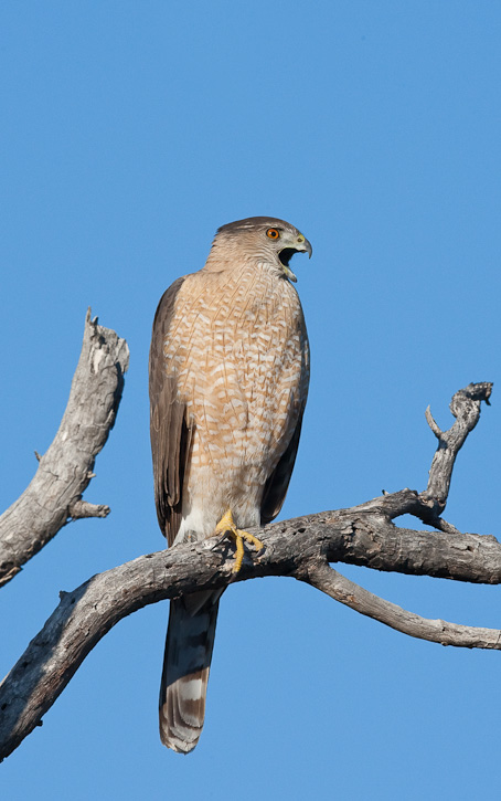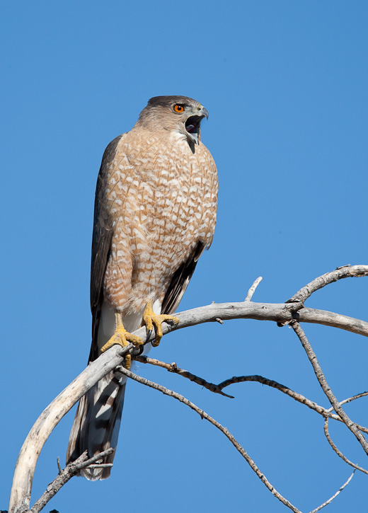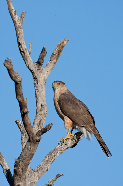 | The next 9 images of an adult Cooper's Hawk were taken in Catalina, Pima Co., Arizona, in March, 2009. These images were all taken with a Canon EOS 1D Mark III and EF 800mm F/5.6 L IS lens. |