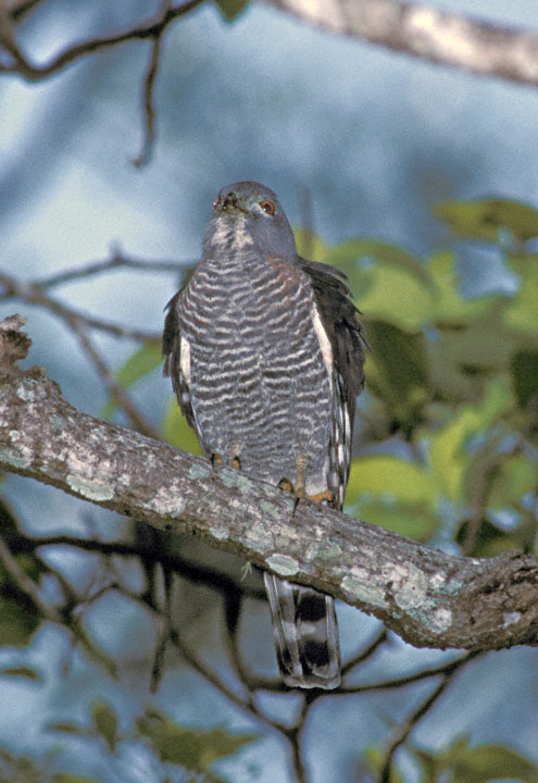 The Double-toothed Kite (Harpagus bidentatus) at right and below was photographed at Palenque, Chiapas, Mexico, in April, 1991. This species ranges from southern Mexico into the Amazon basin of Brazil and can be found in a variety of habitats. These photos were taken with a Canon T-90 & FD 400mm F4.5 lens with a 1.4X extender and Fresnel flash on Kodachrome 64 from a BushHawk shoulder mount. | ![]() |