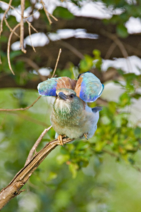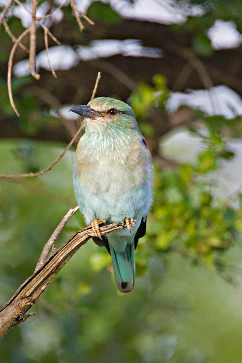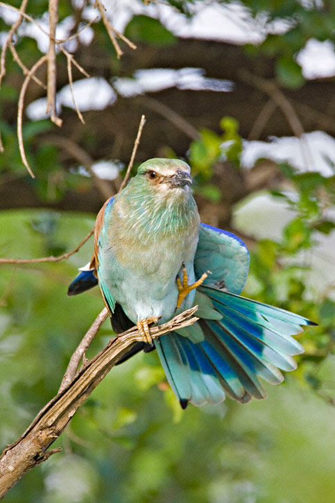 | The European Roller (Coracias garrulus) breeds in parts of southern and eastern Europe and winters in southern Africa. In the breeding season the species is stunningly beautiful, but in the winter is can appear far duller. The shots here show a single wintering bird in Kruger National Park, Mpumalanga Province, South Africa in January, 2006. The images were taken with a Canon EOS 1D Mark II & EF 500mm F/4L IS lens and 1.4X extender. | ![]() |