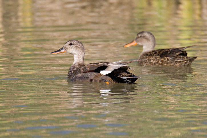 | The pair of Gadwall shown here was at Bear River N.W.R., Box Elder Co., Utah, in June, 2007. This image was taken with a Canon EOS 1D Mark III and EF 600mm F/4 L IS lens and 1.4X extender. |  |