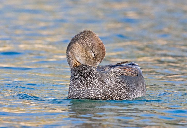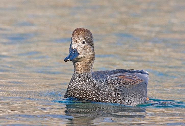 | The next 6 shots show male Gadwalls in Austin, Travis Co., Texas, in December, 2007. These shots were taken with a Canon EOS 40D and EF 600mm F/4 L IS lens. |  |
