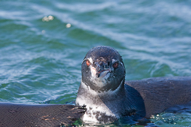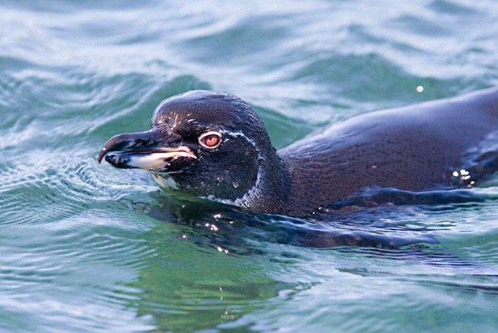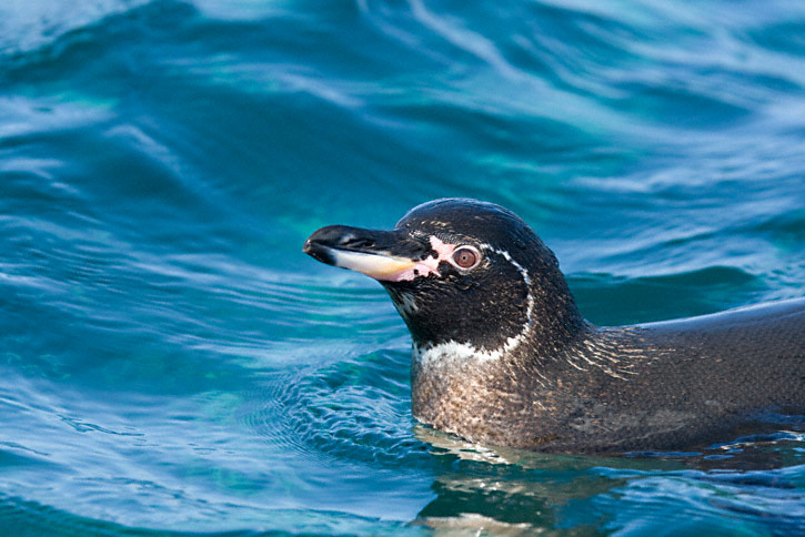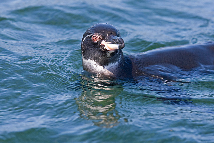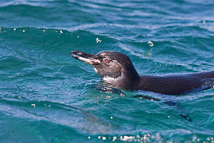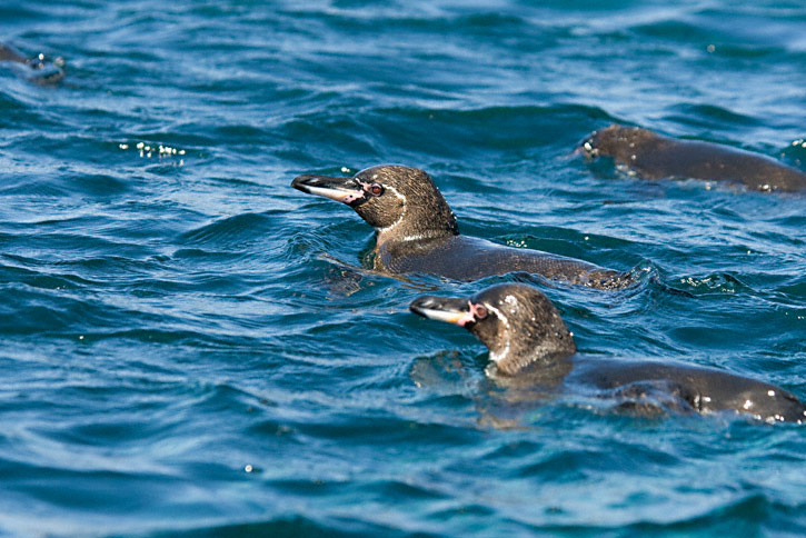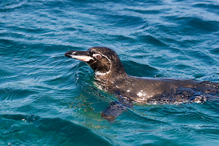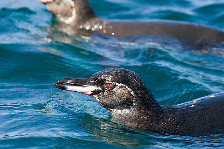The Galapagos Penguin (Spheniscus mendiculus) is an endemic bird of the Galapagos Islands and occurs farther north (the equator) than any other penguin species. The shots here show several Galapagos Penguins swimming at Punta Moreno, Isabela Island, in July, 2007. These shots were taken from a small boat with a Canon EOS 1D Mark III and EF 100-400mm F/4.5-5.6 L IS lens. | ![]() |