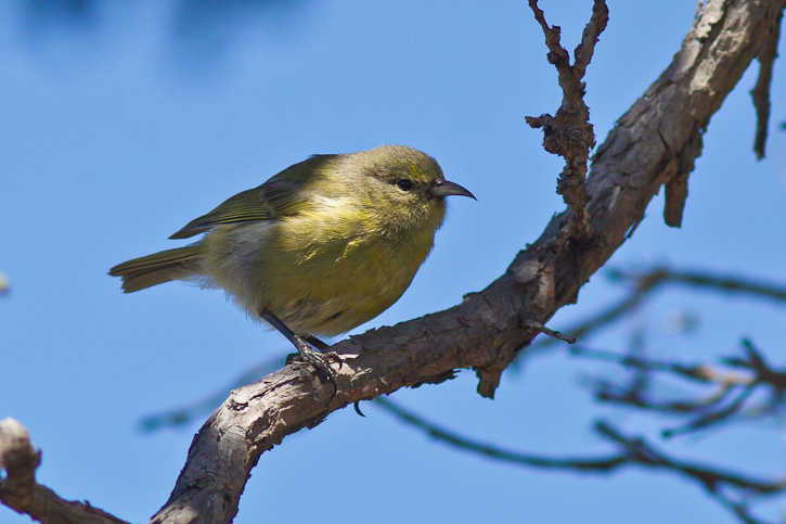 | The 'Amakihi (Hemignathus virens) is a native Hawaiian bird on several islands in Hawaii. Each island has a distinct subspecies and the one on the big island of Hawaii is called the Hawai'i 'Amakihi (Hemignathus virens virens). Though a fairly common bird at the Hawaii Volcanos National Park, they were difficult to photograph. The single shot shown here was taken in August, 2012, at the Hawaii Volcanos National Park with a Canon EOS 1D Mark IV and an EF 300mm F/4 L IS lens and a 1.4X extender. | ![]() |