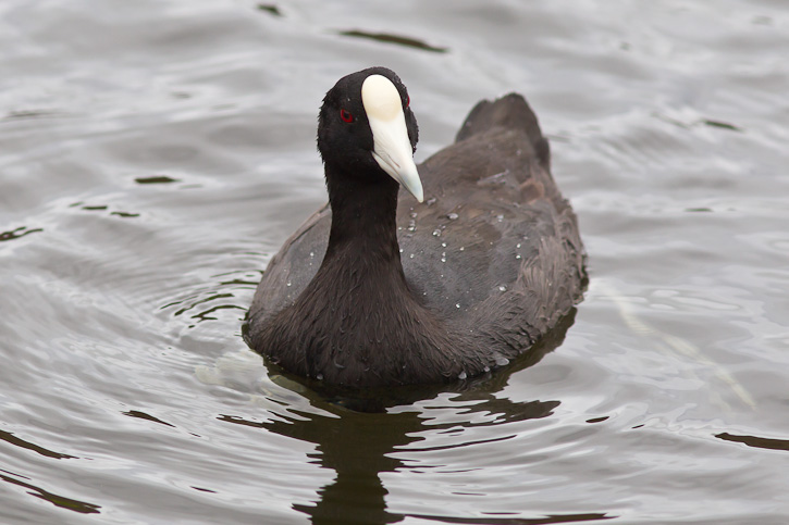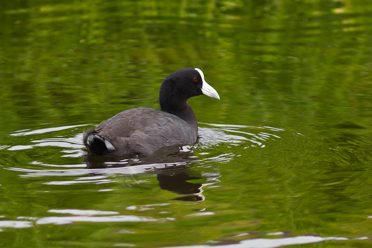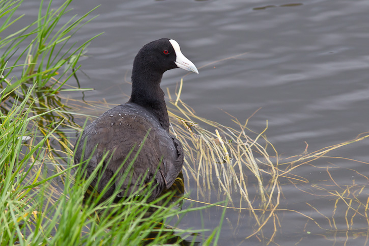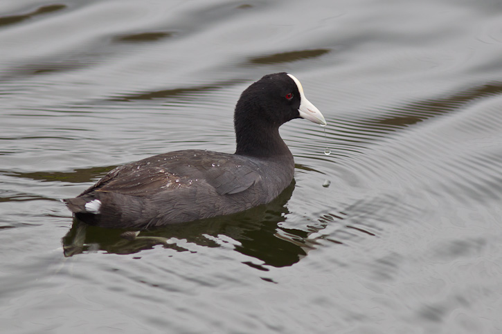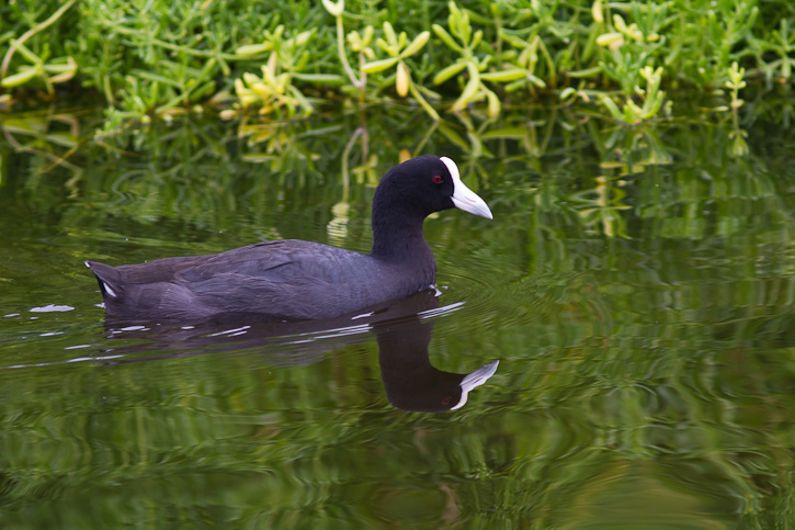 | The Hawaiian Coot (Fulica alai) is an endangered endemic species in Hawaii. It occurs on all of the main islands of Hawaii but is most numerous on Maui, Oahu, and Kaua'i. Until recently it was regarded as a race of the American Coot. The first nine shots on this page were taken in a small canal in Kailua, Oahu, in August, 2012, with a Canon EOS 1D Mark IV and an EF 300mm F/4 L IS lens and 1.4X extender. | ![]() |
