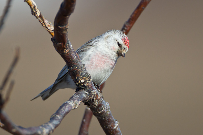 | The Hoary Redpoll (Acanthis hornemanni) is a northern finch closely related to the Common Redpoll. It is typical paler in overall plumage and breeds farther north, however the two species do overlap somewhat in the breeding range. The six shots on this page were taken on Anvil Mountain in Nome, Alaska, in June, 2012 with a Canon EOS 1D Mark IV and an EF 500mm F/4 L IS lens and 1.4X extender. | ![]() |