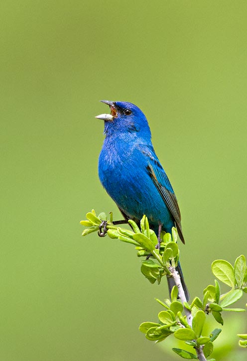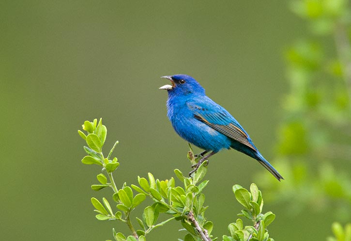 | The singing male Indigo Bunting in the next six shots was a territorial bird near Vanderpool, Bandera Co., Texas in April, 2008. These shots were taken with a Canon EOS 1D Mark III and EF 600mm F/4 L IS lens and 2X extender. |
