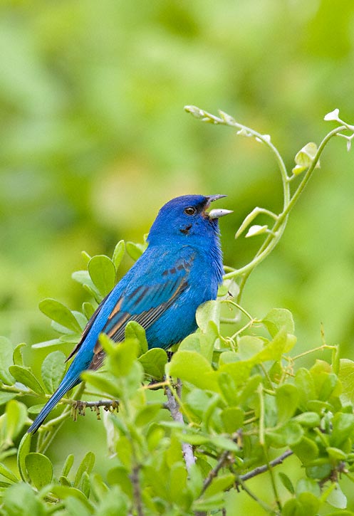 | The male Indigo Bunting shown here was near Silsbee, Hardin Co., Texas, in May, 2009. It was shot with the same gear as previously described. |