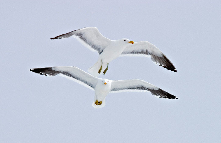 | The next three shots show adult Kelp Gulls in flight. These shots were taken on Half Moon Island, Antarctica, in December, 2003, with a Canon EOS 10D and EF 70-200mm F/2.8 L IS lens and 2X extender. |