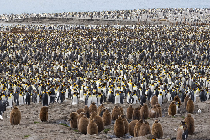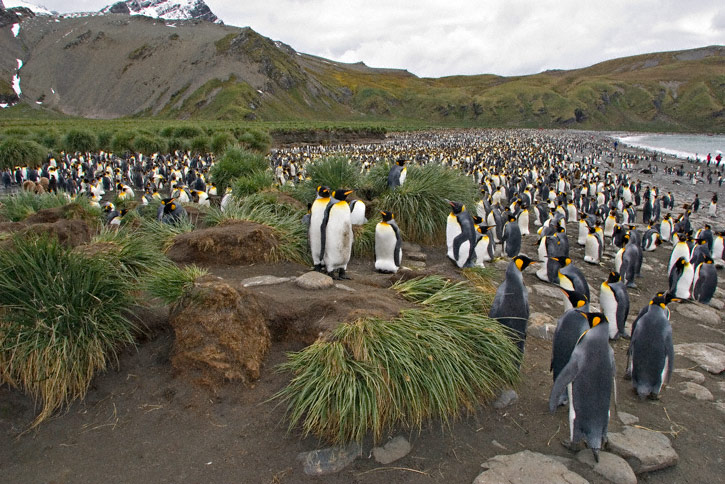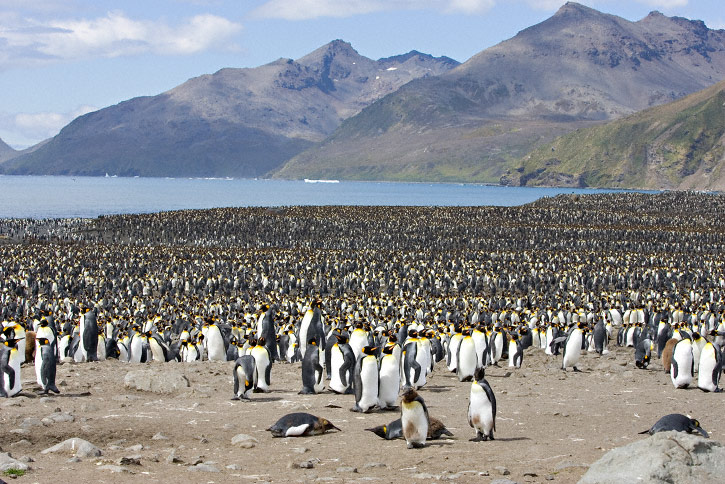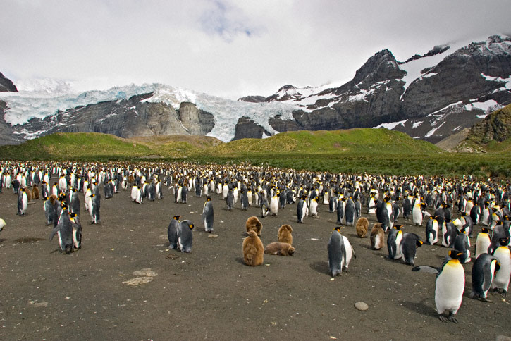 | One of the most spectacular experiences in the natural world is to visit a large King Penguin colony such as the one at Gold Harbor, South Georgia. |