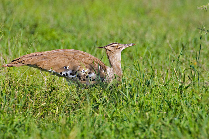 | The Kori Bustard (Ardeotis kori) is a large terrestrial bird of the grasslands of Africa. The shots here were taken in Kruger National Park, Mpumalanga Province, South Africa in January, 2006 with a Canon EOS 1D Mark II & EF 500mm F/4L IS lens and 2X extender. | ![]() |