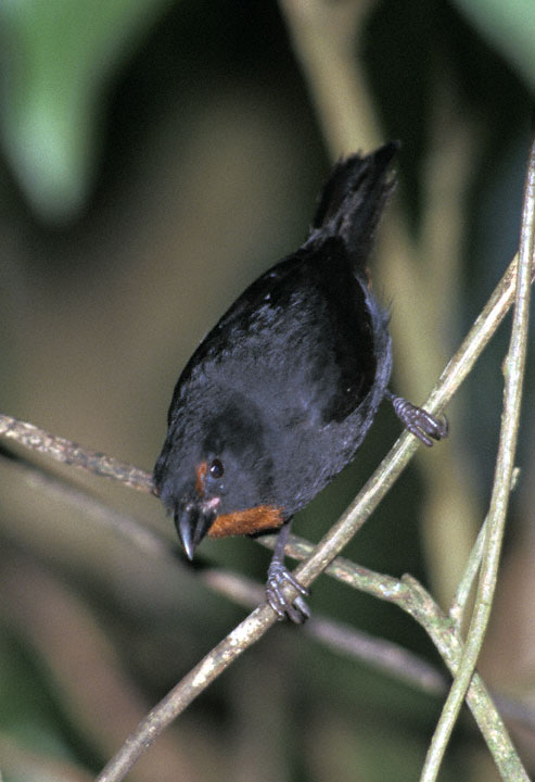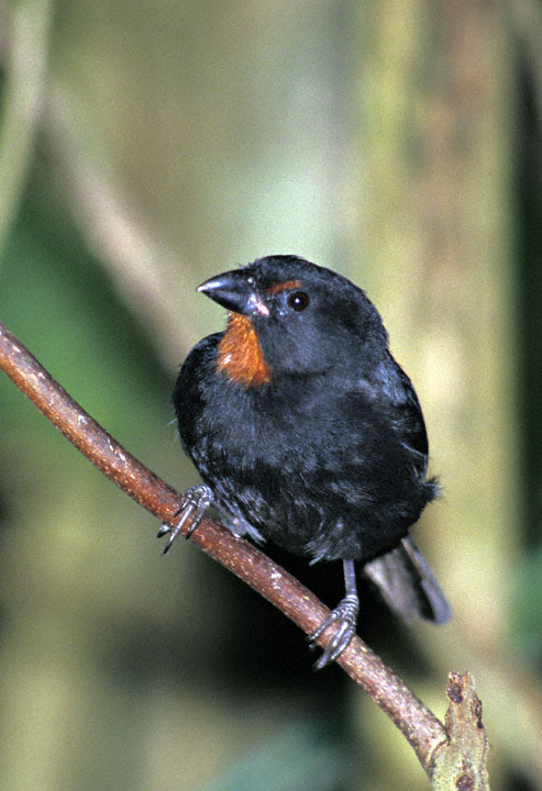 | The Lesser Antillean Bullfinch (Loxigilla noctis) is a common resident species throughout the Lesser Antilles. This male was photographed on the island of Saba in the Netherlands Antilles in July, 1998 with a Canon T-90 & Sigma 500mm F/4.5 lens with a 50 mm extension tube and Fresnel flash on Fuji Sensia 100. | ![]() |