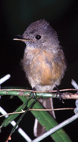 | The Lesser Antillean Pewee (Contopus latirostris) is a small flycatcher of the West Indies. While the new book, A Guide to the Birds of the West Indies by Raffaele et al., splits the Puerto Rican population of this species into the endemic Puerto Rican Pewee (C. portoricenis), the A.O.U. has not yet made this change. This individual was photographed at the Maricao State Forest, Puerto Rico, in July, 1998. A Canon T90 & FD400mm F4.5 lens and Fuji Sensia 100 was used. A Fresnel flash was used since the area where the bird was foraging was quite dark. The photos were shot hand-held with the camera and lens on a BushHawk shoulder mount. | ![]() |