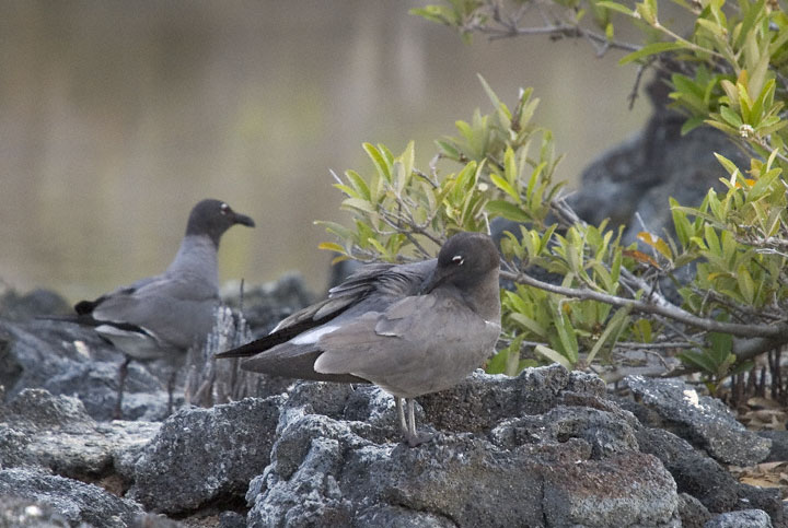| The entire world population of the Lava Gull (Larus fuliginosus) lives on the Galapagos Islands. There are thought to be only about 400 pairs of this species in existence. The birds here were photographed on Bachas Beach, Santa Cruz Island, Galapagos, in July, 2003, with a Canon EOS 10D and EF 70-200mm F/2.8 L IS lens. |