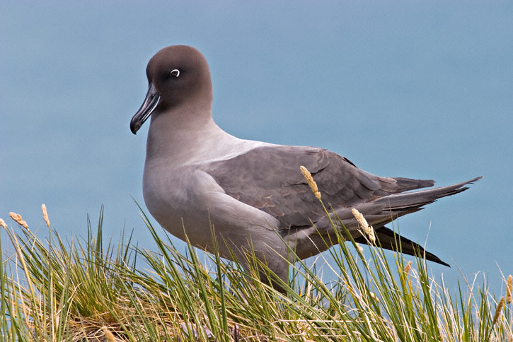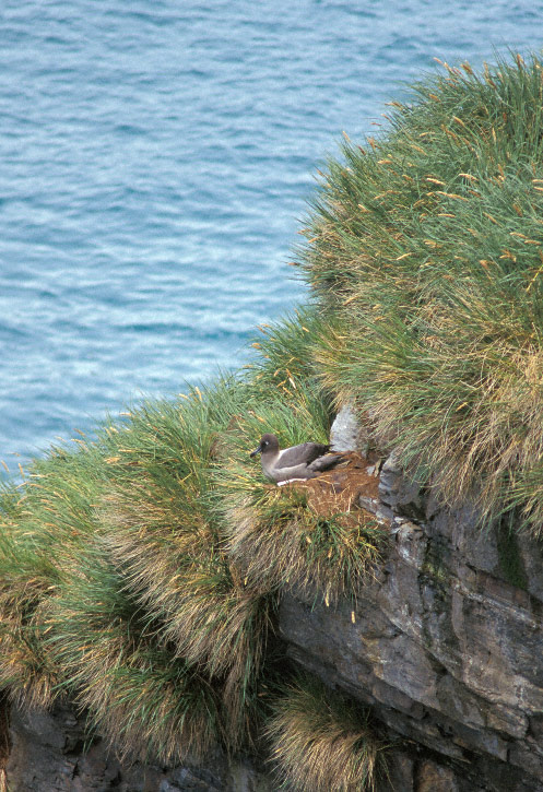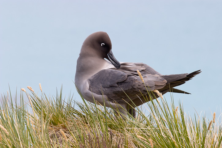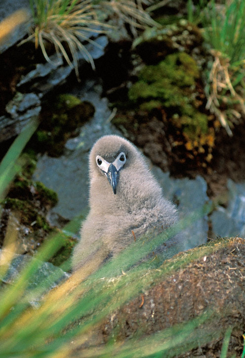 | In January, 1998, I was back at Gold Harbor and got a few shots of another adult Light-mantled Albatross on the nest. It was photographed with the same equipment as above. |
