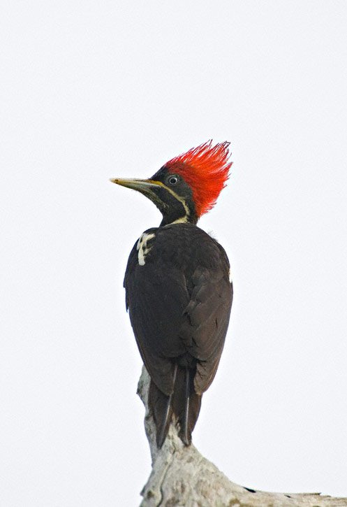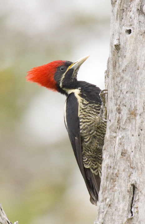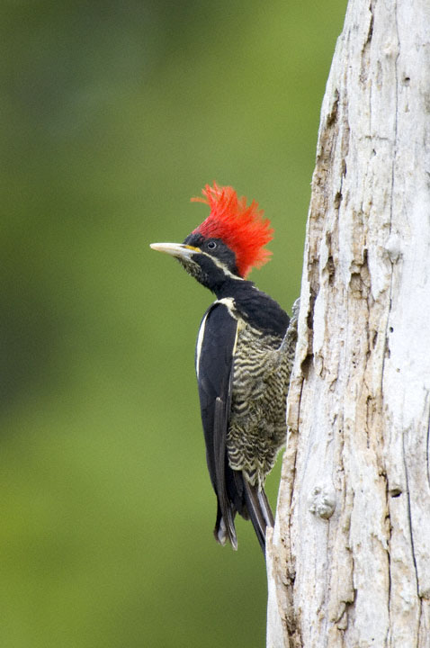 | The Lineated Woodpecker (Dryocopus lineatus) occurs from Mexico southward into parts of Argentina. It Mexico, it occupies a variety of habitats from extensive forests to farm edges and scattered woodland. It is a large woodpecker and quite conspicuous. The Lineated Woodpecker shown in the first 3 shots here was photographed in December, 2004, in southern Tamaulipas, Mexico. The shots were taken with a Canon EOS 1D Mark II and a 600 mm F/4 L IS lens. |