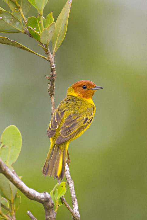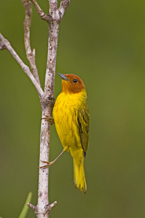 | The Yellow "Mangrove" Warbler (Setophaga petechia bryanti) is one of a number of subspecies of the Yellow Warbler. Since it is so visually distinctive I have created a web page just for this subspecies. There is a possibility that this bird will eventually be declared a distinct species. The bird occurs along most of both coasts of Mexico, usually in mangroves. The first known occurrence of this bird in the U.S., was a bird photographed in Rockport, Texas, in 1978. In March, 1990, another individual spent more than a month at the mouth of the Rio Grande at Boca Chica, Cameron Co., Texas (singing from the dead mangroves which had been killed by a freeze the previous winter). In 2003 and 2004 a number of these birds were found in mangroves on the south Texas coast near Port Isabel and South Padre Island where they still occur, apparently all year long. The most recent sustained, killing freeze in deep south Texas, was in 1989, so I speculate these birds will remain here unless or until another killing freeze devastates the mangroves. The first 9 images here of a territorial male were taken in May, 2007, at South Bay, Cameron Co., Texas, with a Canon EOS 1D Mark II and EF 500mm F/4 L IS lens and 2X extender. My thanks to Scarlet Colley for taking us by boat to an isolated mangrove area where we could photograph this bird. Scroll down for images of this subspecies from Mexico. |