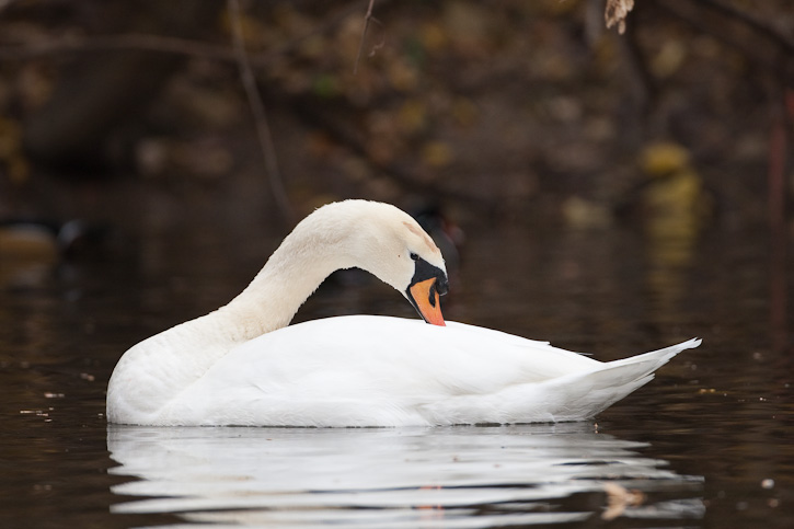 | The Mute Swan (Cygnus olor) is an old world species which has been introduced across much of the United States where it is often commonly seen in urban parks and gardens as well as many rivers and large lakes. The first 5 shots on this page show Mute Swans in Austin, Travis Co., Texas, in January, 2010. |  |